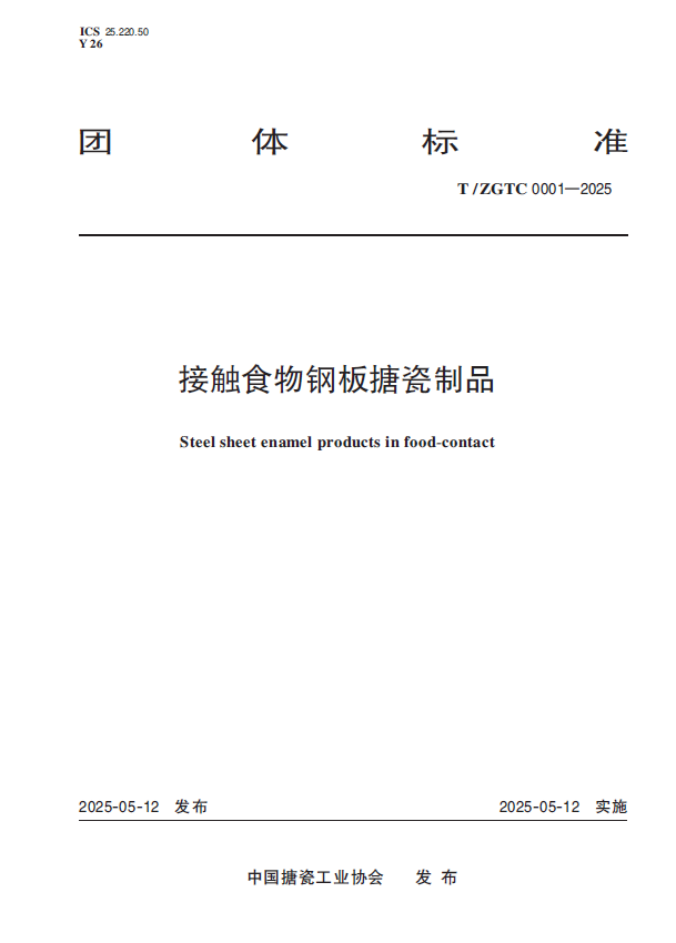 行业《接触食物钢板搪瓷制品》T/ZGTC 0001-2025 团体标准发布